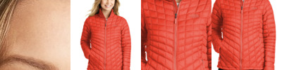 Designed with baffles contoured to fit your body, this streamlined jacket offers lightweight, highly compressible ThermoBall ® powered by PrimaLoft ® synthetic insulation. 15D 33 g/m2 100% nylon with DWR finish 11.5 g/ft2 PrimaLoft ® ThermoBall ® synthetic insulation Stows in left hand pocket Contrast embroidered The North Face logo on left chest and right back shoulder Hem cinch-cord BENEFITS DURABLE WATER-REPELLENT: DWR is applied to the face of the fabric to provide the first line of defense against wet weather. INSULATED: Insulation traps hot air for reduced heat loss and increased warmth. PACKABLE/STOWABLE: Highly compressible layer for emergency use or travel. SYNTHETIC: Designed to replicate the qualities of down, but retain them even when wet.